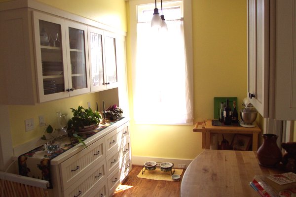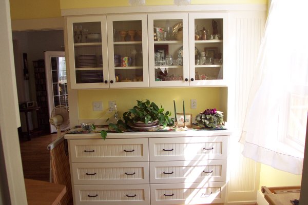 One of the most beautiful parts of the kitchen is this built-in cabinet. It seems as if it was part of the original house. It gives us a place to display our collection of antique pitcher-pots and glassware.
