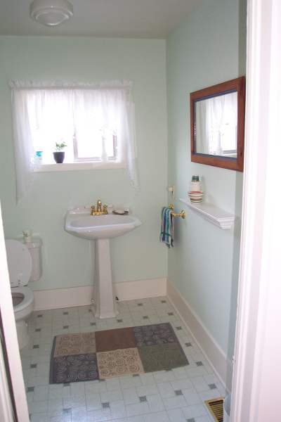 We updated the downstairs half-bath/powder room when we discovered dry rot in the floor. It looks pretty spiffy now.