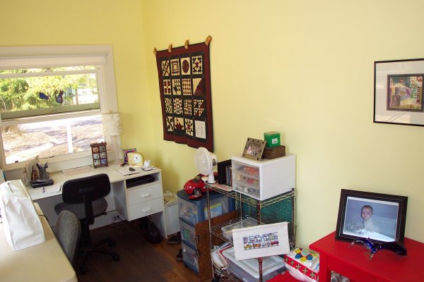 The sewing area/office is another great part of the new kitchen. I can sit and watch the squirrels and birds and neighborhood kids play while I make quilts and other projects. We will eventually have built-in cupboards and work surfaces created for this area.
