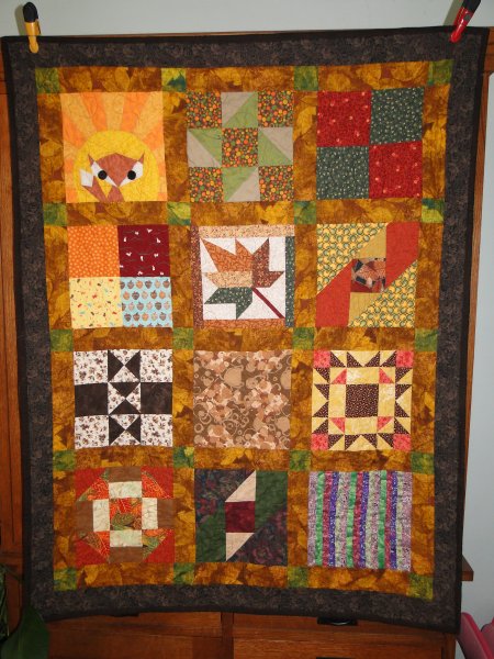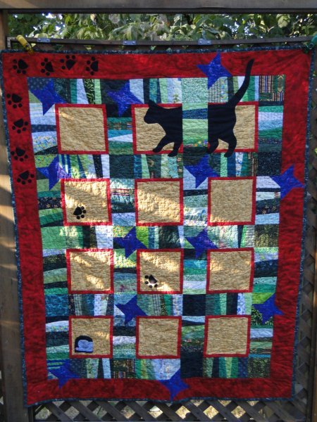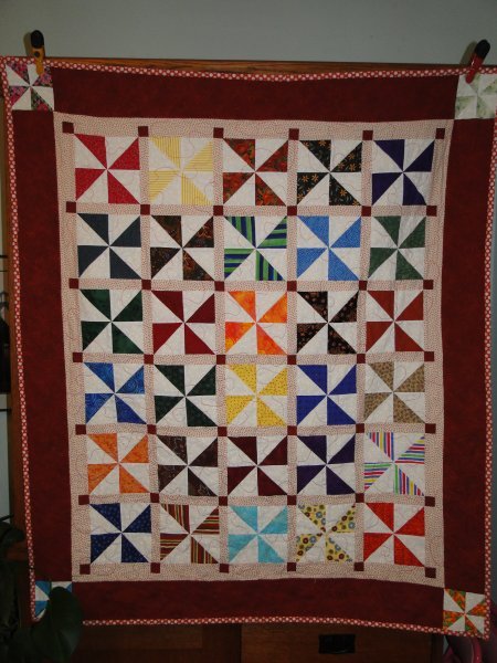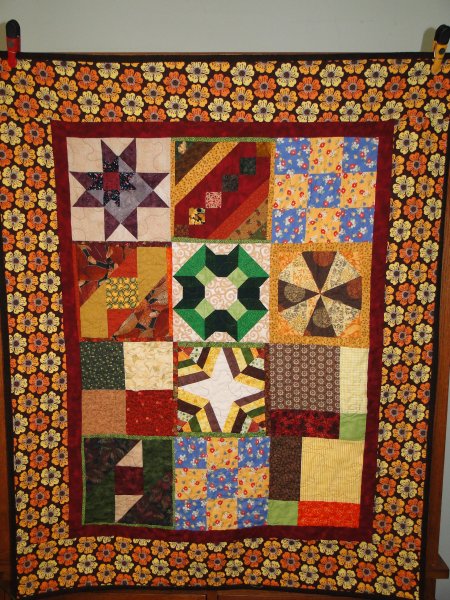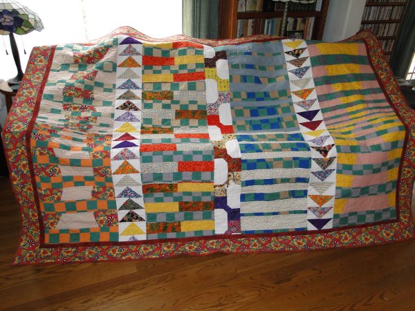 Quilt finished for our quilting friend Ann, who started this for her niece. Pieced by me and others in a quilting class, quilted by Val Bradley from the Quilting Bee forum. March 2012.