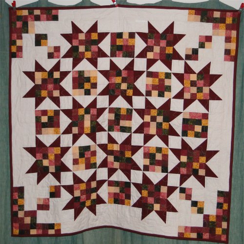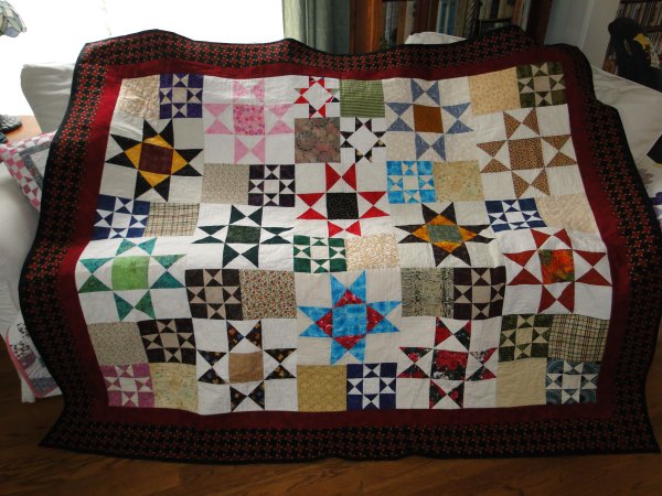 Twin sized quilt made from star blocks shared with members of Quilting Passion. For Adopt-a-Family. June 2012.