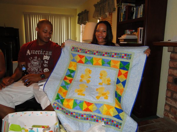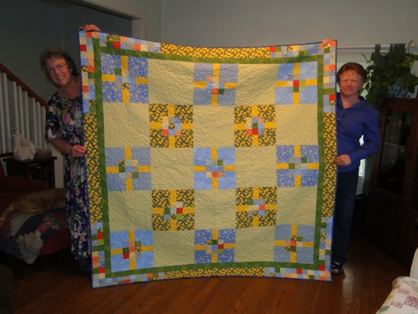 Liz holding her first quilt. July 2012