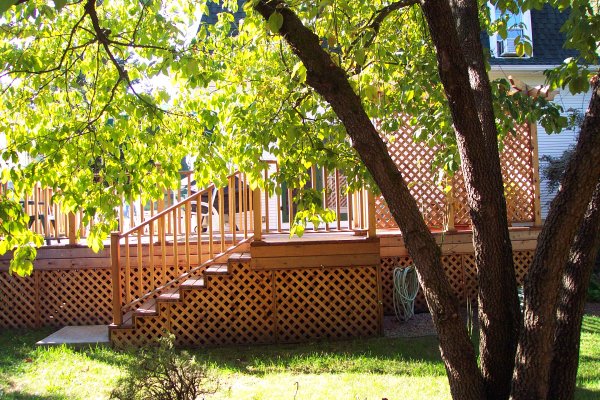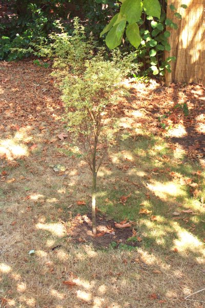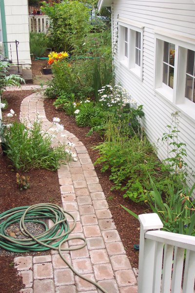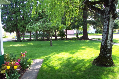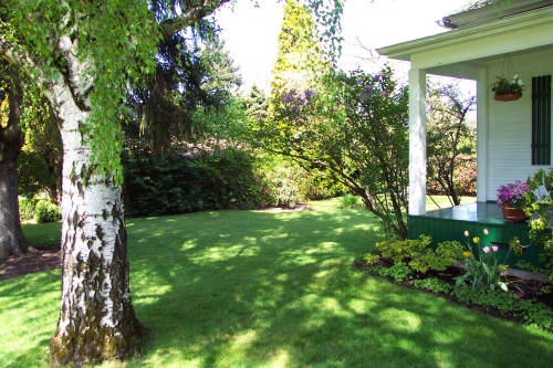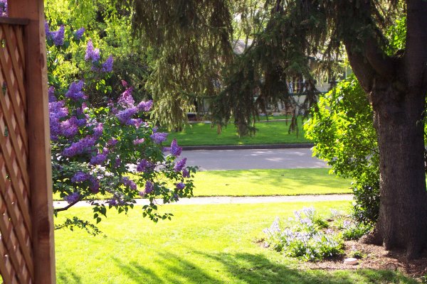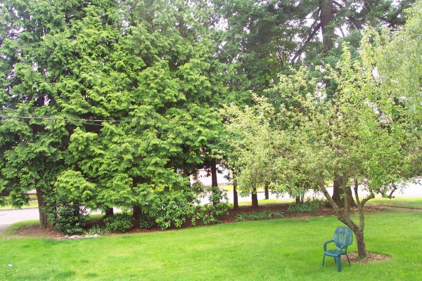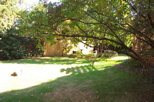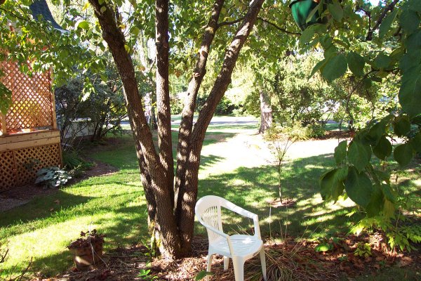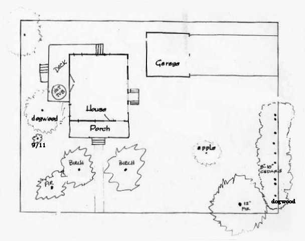 One of the things that attracted us to this house is the yard. It is equivalant to two and a half lots, with many old trees. While we have worked hard on the general yard, the only tree we have added is a little Japanese Butterfly Maple as a memorial to the thousands who died on September 11, 2001. This is the general layout for the yard: ![]()